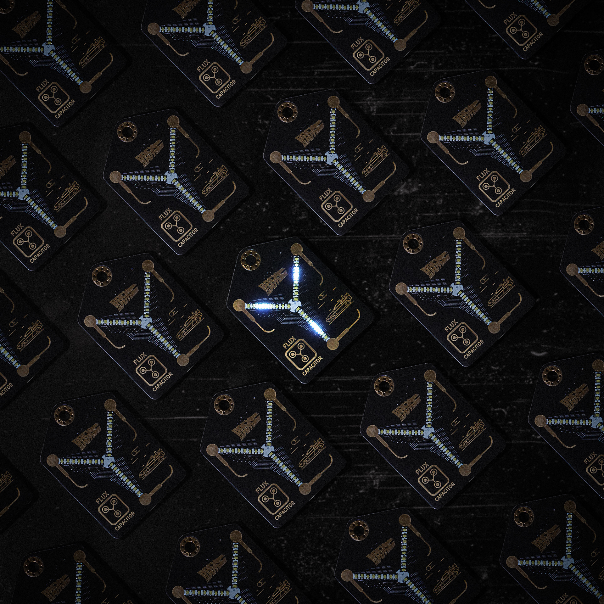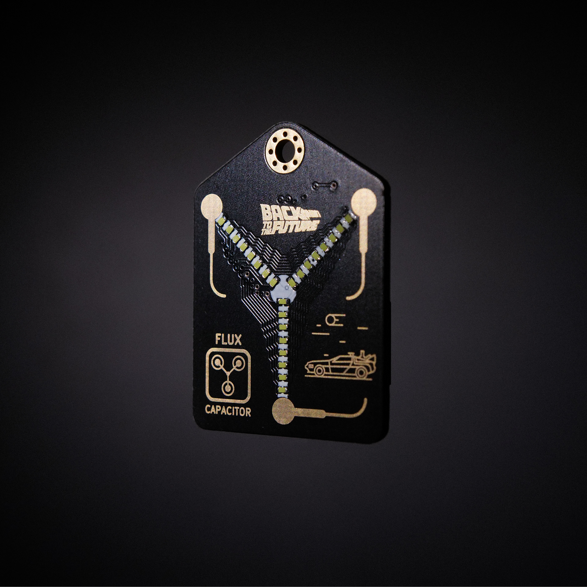 Social media content for "Curious Minds Development" and their small Flux Capacitor from the Back to the Future movies.